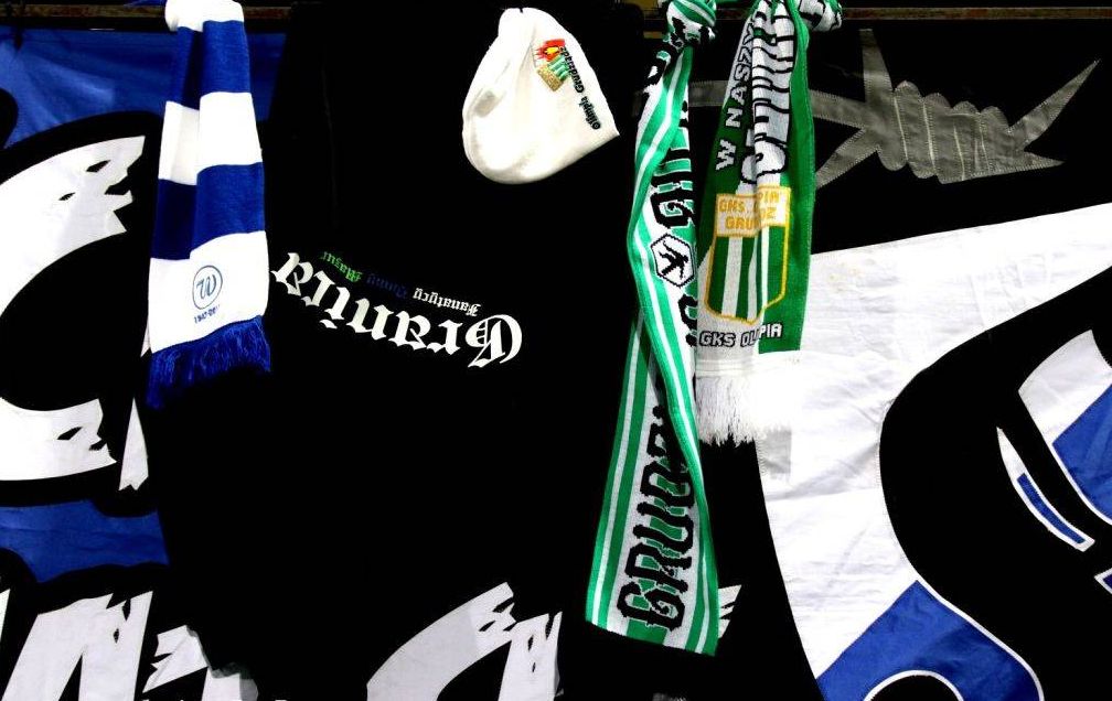 Opis: Flaga Goplani Inowrocław (FC Zawiszy Bydgoszcz) oraz szale Zawiszy Bydgoszcz skrojone przez fanów Polonii Bydgoszcz i spalone na meczu Stomil Olsztyn – Zawisza Bydgoszcz (16 września 2012).